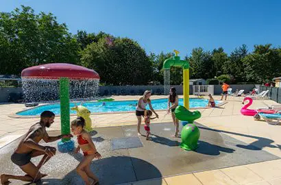Le camping propose des parcelles spacieuses et des infrastructures modernes, notamment un espace aquatique avec piscines intérieure et extérieure, ainsi qu’une pataugeoire avec aire de jeux aquatiques pour les enfants.