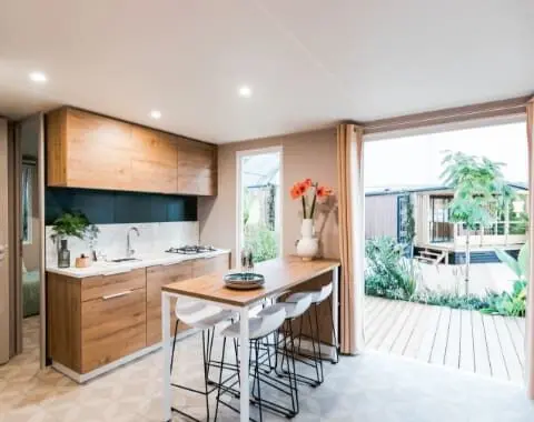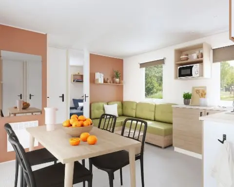 Plongez dans l’atmosphère conviviale et relaxante du camping, avec des mobil-homes modernes et spacieux.